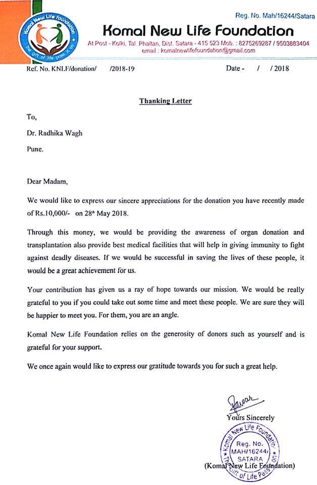 “Komal New Life Foundation has actually been a donor to me, for